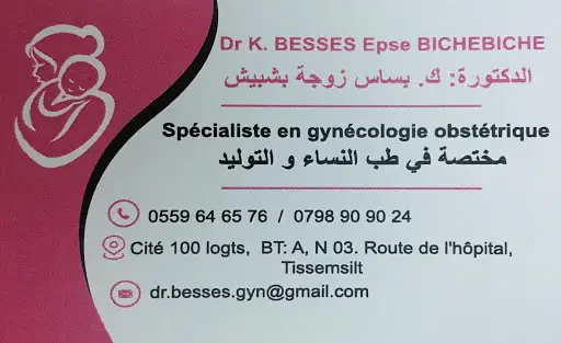 Cabinet de Gynécologie Obstétrique Dr K. BESSES situé à Bt: A, N°03 Route de l'hôpital, Tissemsilt 38000